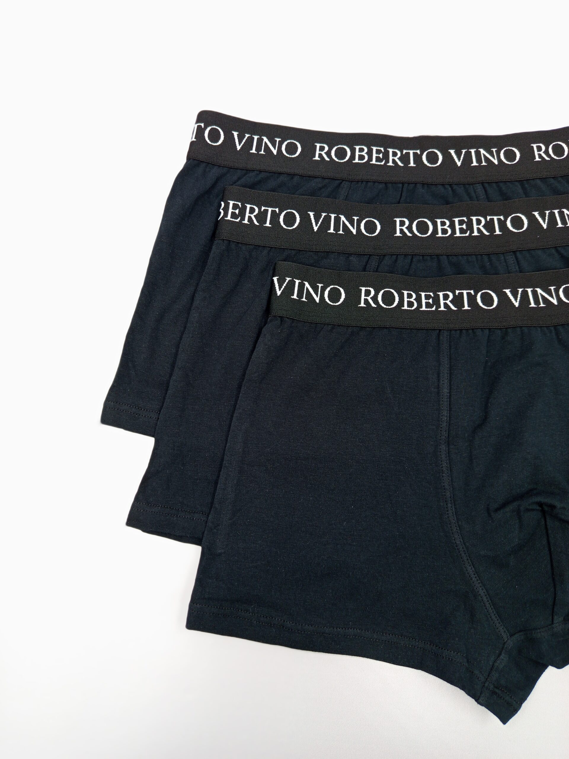 שלישיית תחתוני בוקסר מבית ROBERTO VINO עשויות כותנה נושמת, לגמישות והתאמה אידיאלית. גומי מותני איכותי בצבע שחור, עם לוגו לבן, מעניק תמיכה מעולה ואינו לוחץ.