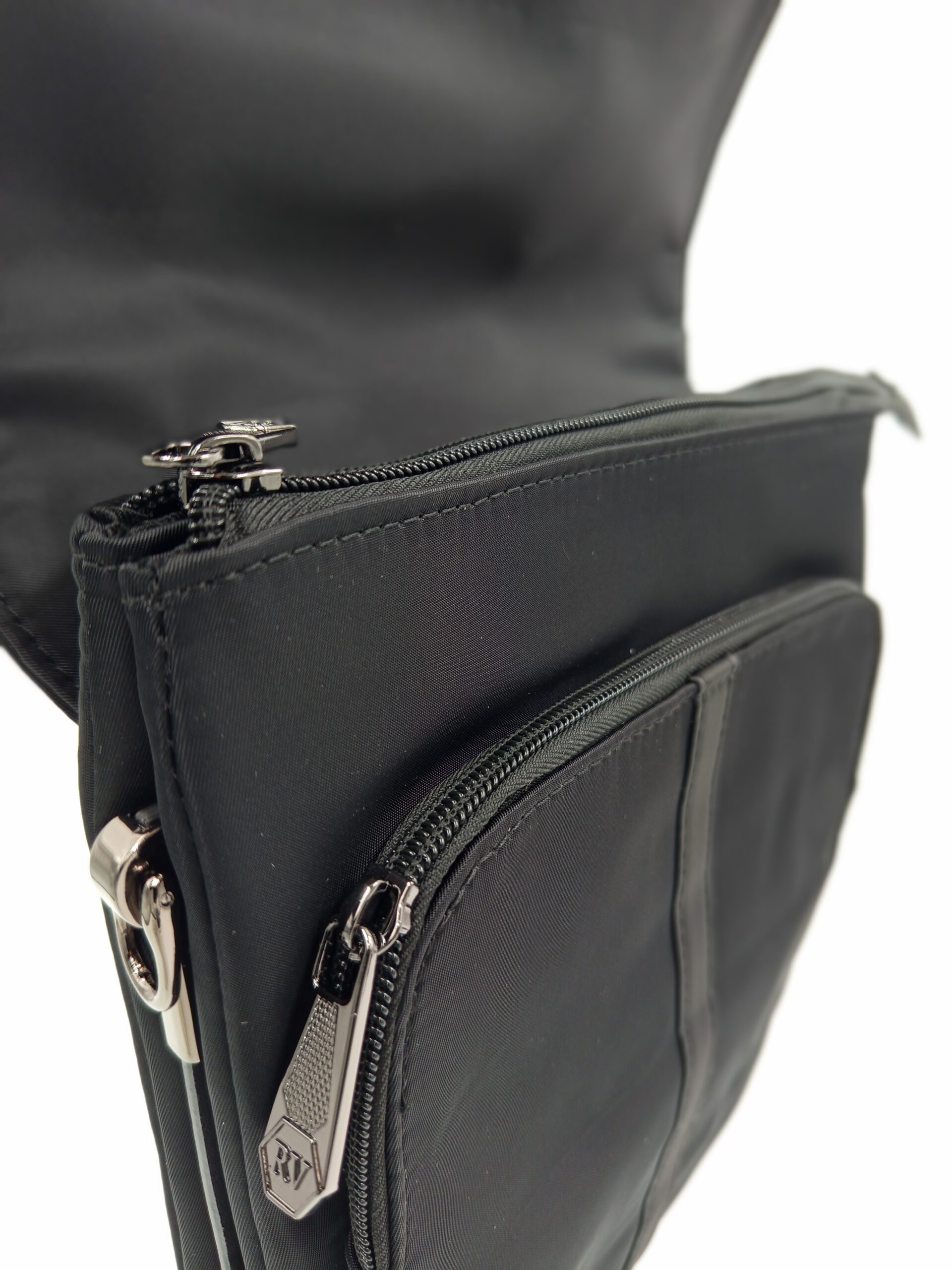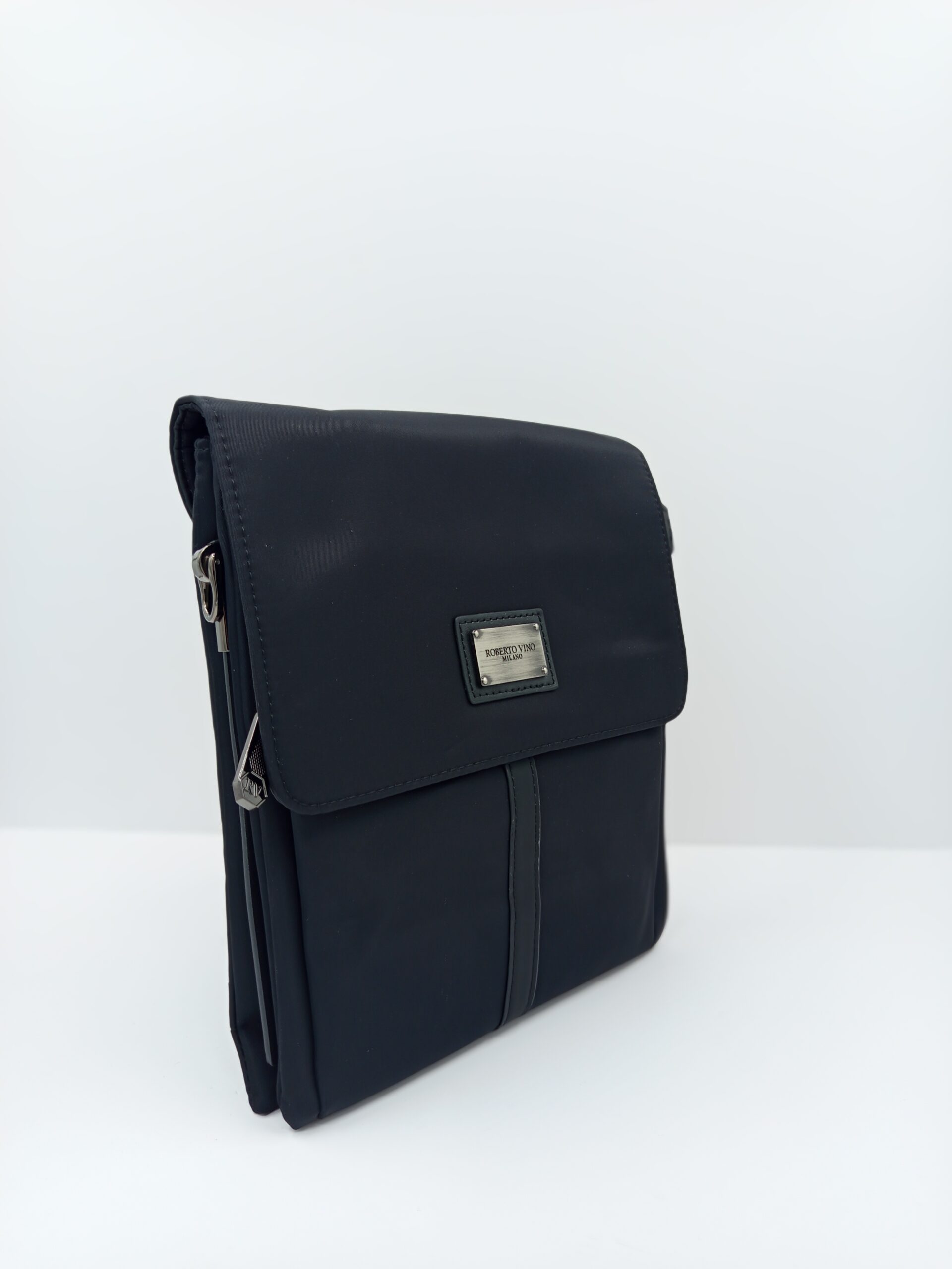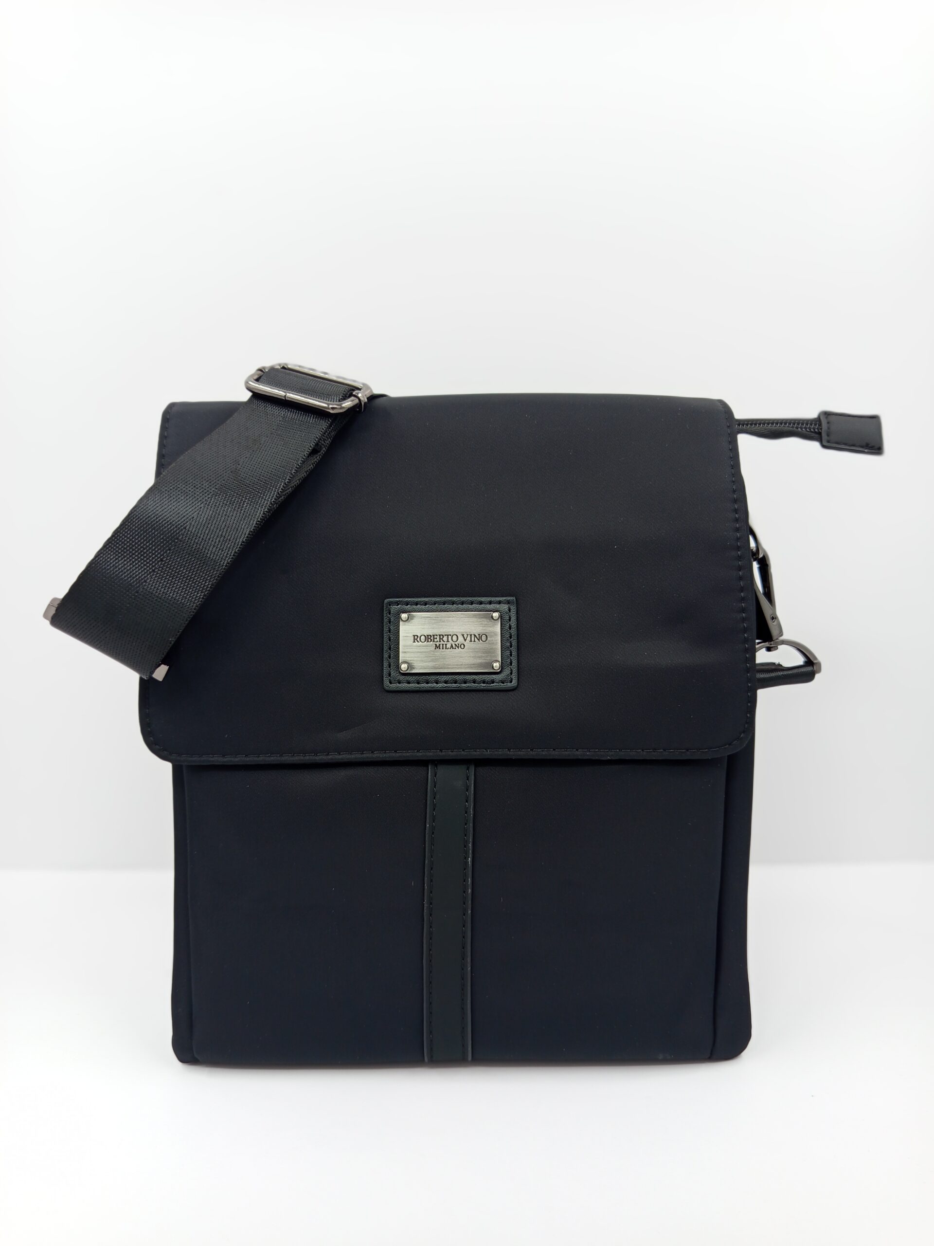תיק קרוסבודי סלים מבית ROBERTO VINO. עשוי 100% פוליאסטר, כולל תאים מרכזיים ותא המחולק לשניים בסגירת רוכסן, משולב תא אחורי וסגירת מגנט לשימוש נוח.