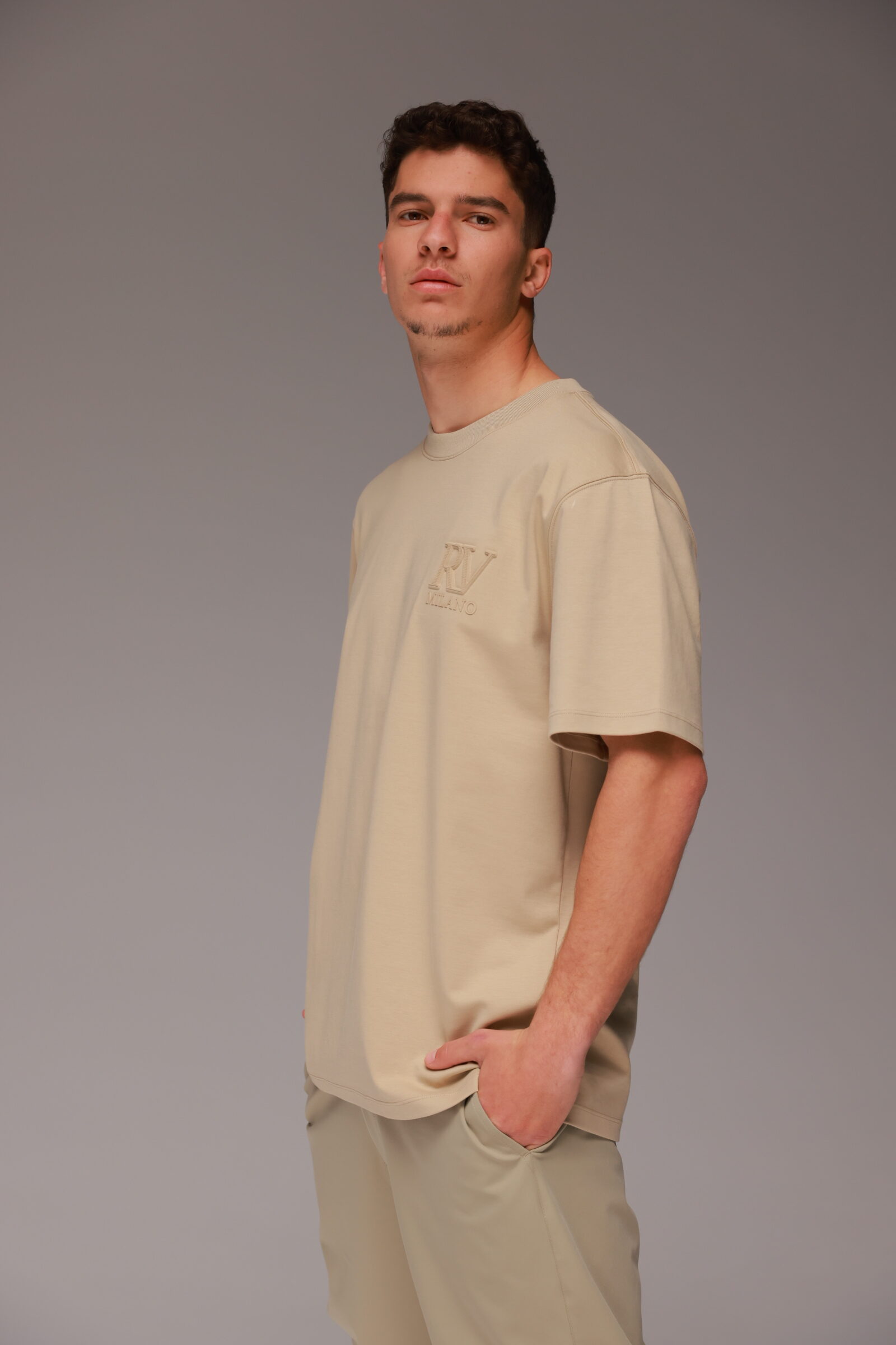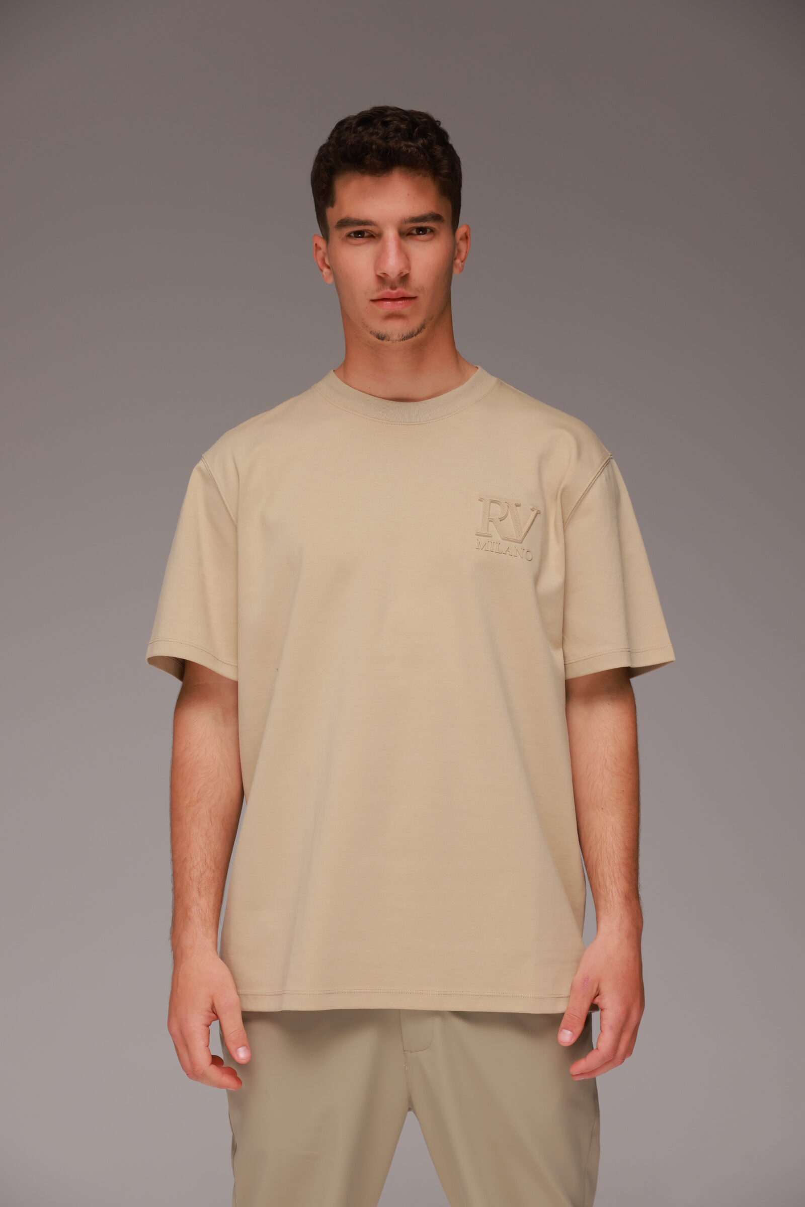 חולצת טישרט מבית ROBERTO VINO בגזרה רחבה ומראה יוקרתי. רקמת הלוגו מוסיפה נוכחות אלגנטית, והבד האיכותי מספק נוחות וגמישות מקסימלית. החולצה משתלבת עם ג’ינס למראה יום-יומי או עם מכנסיים מחויטים ללוק מתוחכם.