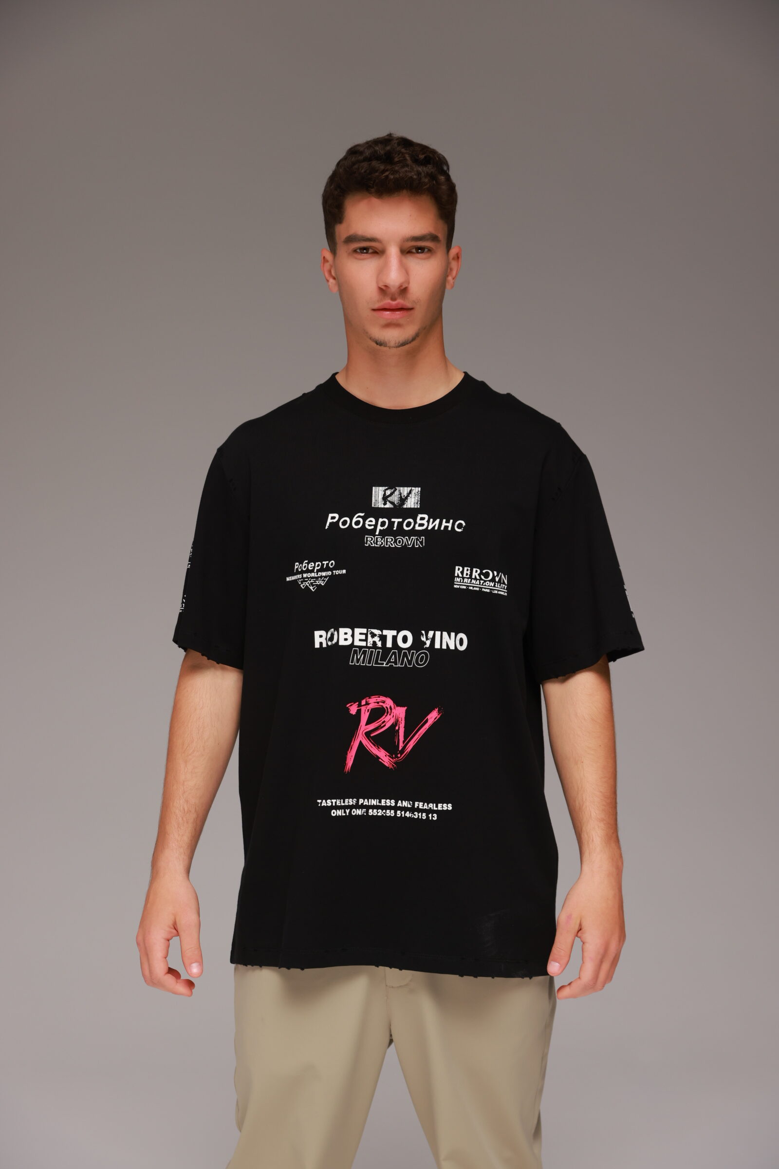 חולצת טישרט מבית ROBERTO VINO בעיצוב מרשים. גזרה רחבה ומחמיאה.